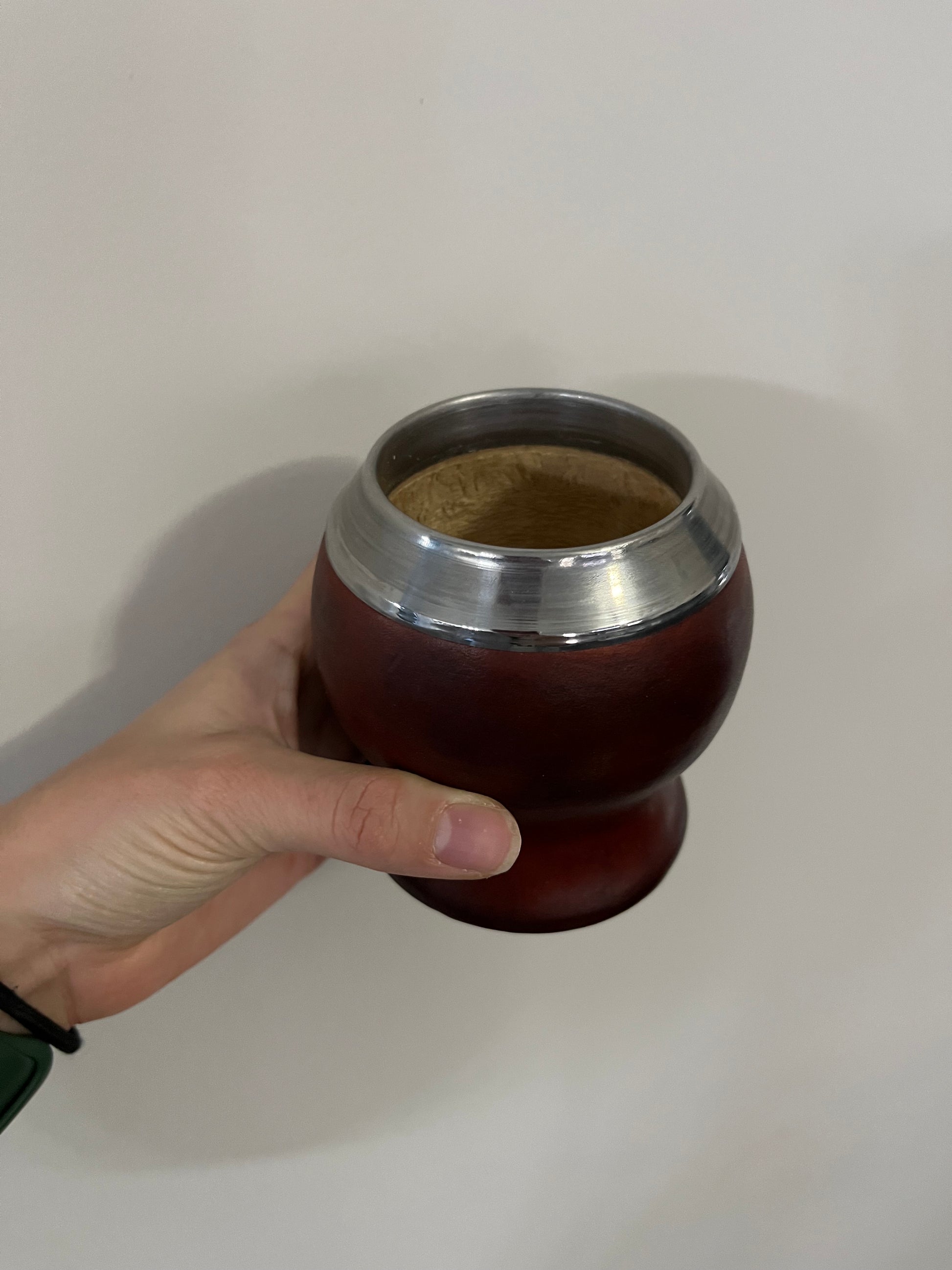 Esta taza no sólo es estéticamente agradable sino también práctica. Contiene cómodamente las hojas de yerba mate y el agua, lo que facilita la preparación de su bebida. Ya sea que sea un entusiasta experimentado del Mate o sea nuevo en el ritual, esta taza promete una experiencia de bebida refinada. Eleva tus momentos de Mate con esta impecable combinación de forma y función.